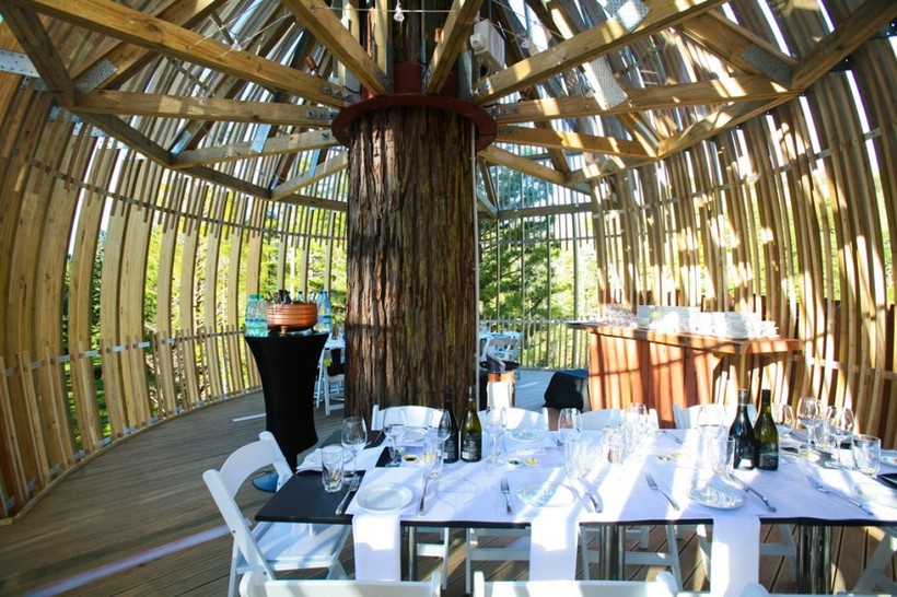 Этот ресторан, расположенный возле Окленда, Новая Зеландия, построен вокруг 40-метрового красного дерева. Он не работает в режиме обычного ресторана и служит только для особых событий.