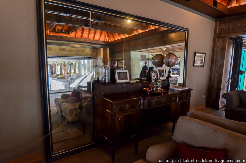 После экскурсии нас ждет дегустация на верхнем этаже. Здесь собраны мебель и артефакты, принадлежавшие создателям легендарной марки виски.