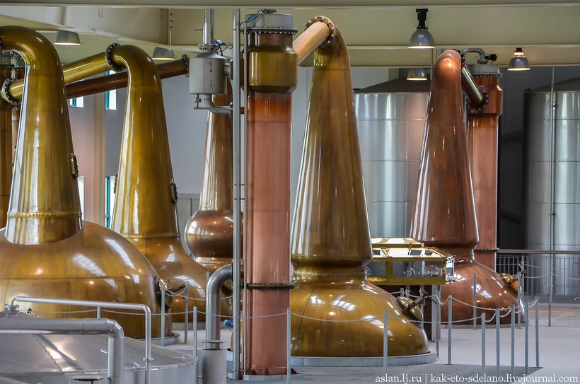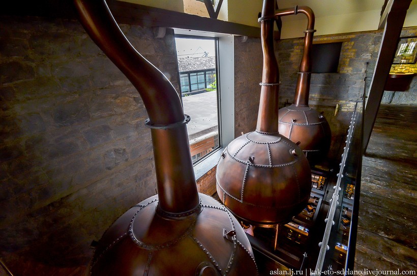 В цеху сохранили старые перегонные кубы, которые до сих пор функционируют. Вот что значит приверженность традициям.