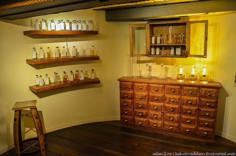 Уголок «спиртмейстера»). У главного специалиста имелась такая лаборатория, где он определял качество виски, начиная от образцов, взятых на разных стадиях варки, до готового спирта и виски.