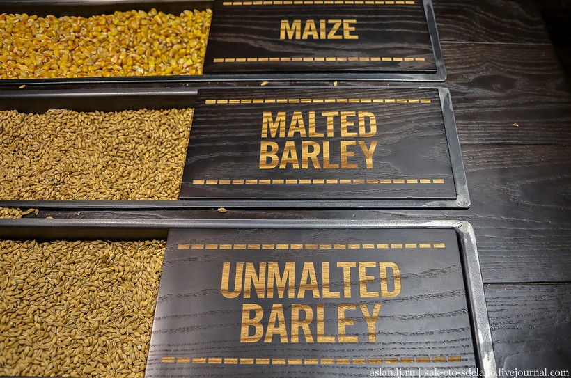 После обеда мы продолжили знакомство с процессом производства виски. Для того, чтобы его приготовить, нужно всего несколько ингредиентов — ячмень, ячменный солод + кукуруза и, конечно же, чистая вода. Для разных сортов виски разные рецепты приготовления, но для Tullamore DEW подходит именно этот.