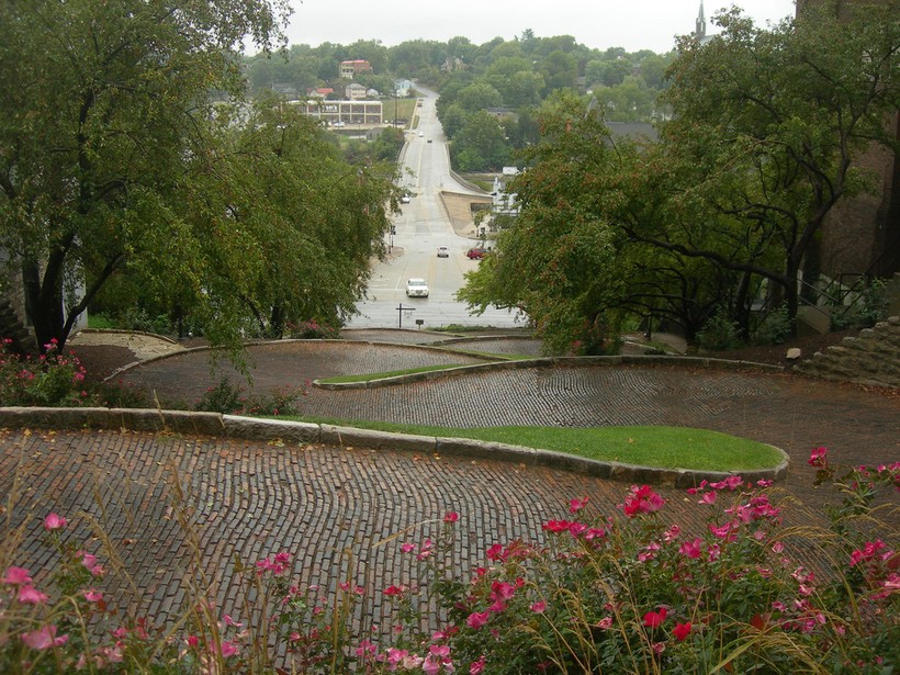 Еще одна дорога, имеющая право зваться самой крутой, находится в городе Берлингтон, в штате Айова. Называется она Змеиный переулок. На ней тоже 8 поворотов, но она во много раз короче Ломбард-стрит — всего лишь 83 метра. Дорогу построили эмигранты в XIX веке, стараясь воспроизвести тропы виноградников Германии и Франции. Переулок вымостили глиной и известняком. Здесь также только одностороннее движение, сверху вниз. Когда-то по дороге можно было проехать и вверх на холм, однако лошади постоянно выбивали кирпичики, поэтому здесь с тех пор одностороннее движение, хоть на лошадях уже не ездят.