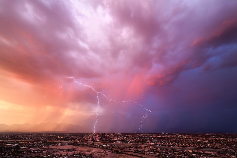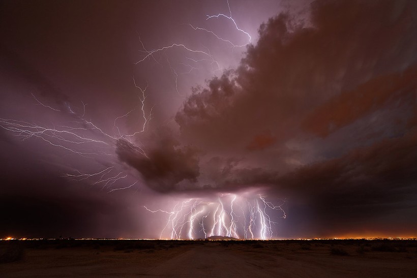 Фотограф Майк Олбински (Mike Olbinski) родился в штате Аризона (США) — месте, где регулярно можно наблюдать всевозможные погодные катаклизмы, зрелищность которых просто зашкаливает. В объектив его фотоаппарата попадают смерчи, ураганы, песчаные бури, устрашающие молнии, живописные суперъячейки и другие явления. Именно съемки бурь и гроз и принесли ему наибольшую известность.