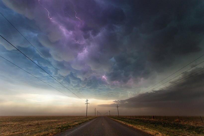 Вымеобразные облака всегда выглядят особенно зловеще. Кадр сделан в Техасе.