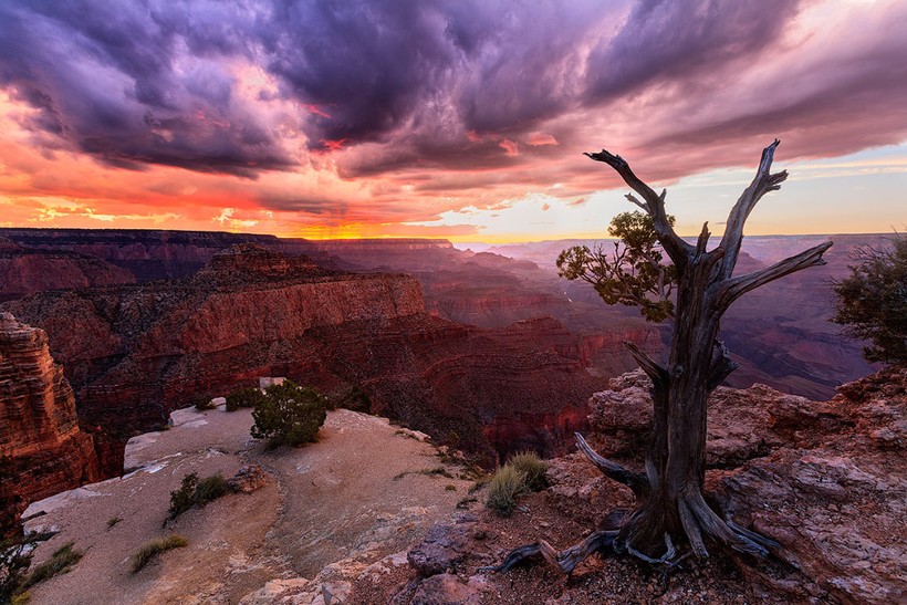 «Кровавый» закат в глубочайшем Гранд-Каньоне в Аризоне.