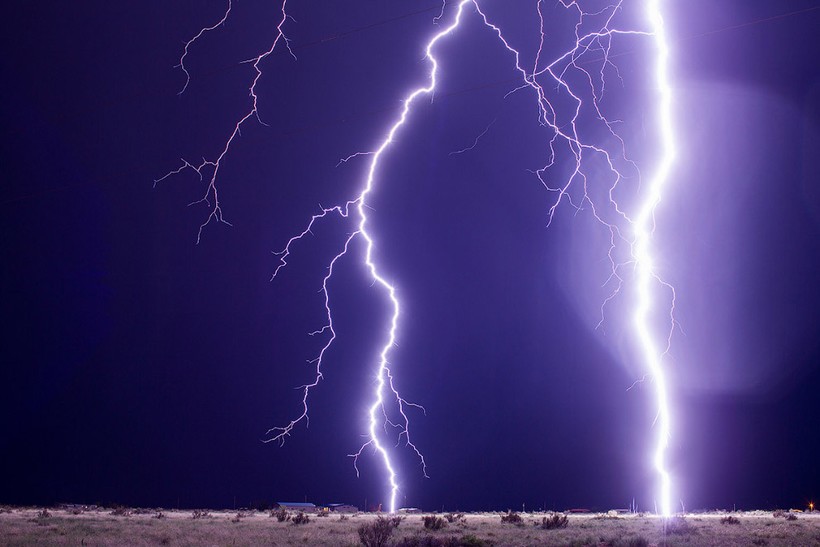 Гигантские молнии в Нью-Мексико, бьющие прямо в землю.