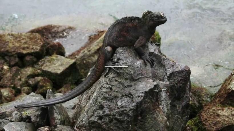 Морских игуан Дарвин прозвал «бесами тьмы» за то, что они все время проводят ныряя под воду и соскабливая с камней наросшие растения, которыми питаются.