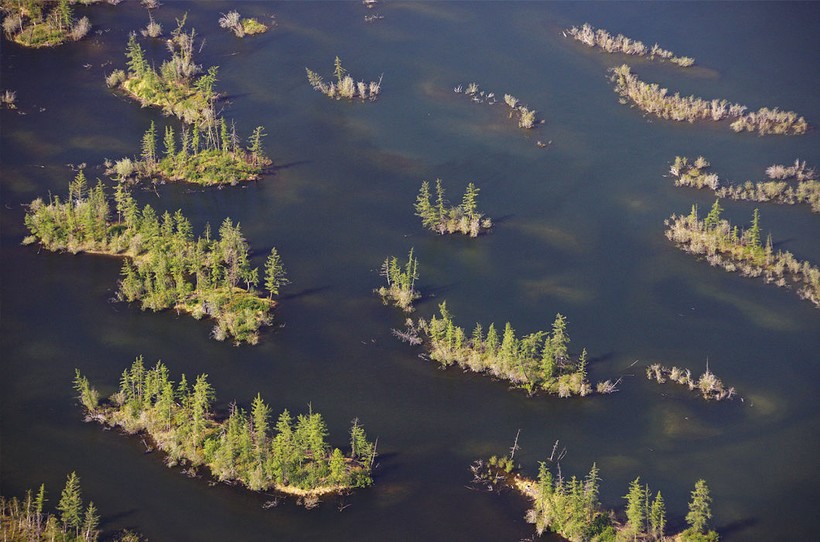 Небольшие острова на озере в тундре Таймырского полуострова. Красноярский край