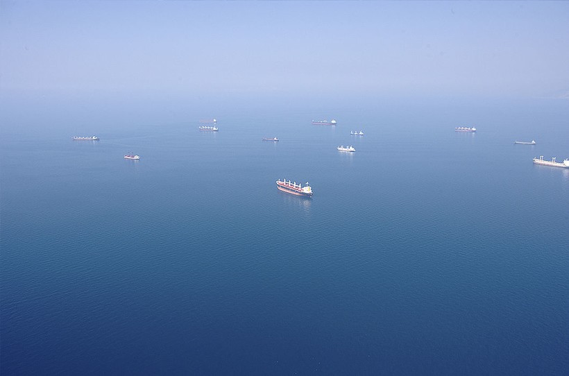 Морские суда в районе Новороссийска. Черное море. Краснодарский край