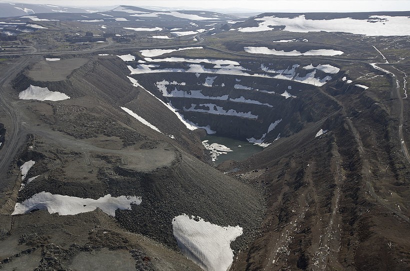 Никелевый рудник. Карьер горно-металлургического комбината «Норильский никель». Норильск. Таймырский автономный округ