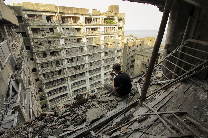 Японский остров Хасима похож на военный корабль. В начале 19 века здесь обнаружили залежи каменного угля, благодаря чему за пару десятилетий тут вырос полноценный город с кипящей жизнью и активной деятельностью. В предвкушении хорошей прибыли и безбедного существования на острове выстроили многоэтажки, школу, больницу и всю необходимую инфраструктуру. В какой-то момент плотность населения в жилой зоне начала достигать невероятной цифры — 139 100 человек на 1 км². Но в середине 70-х, с появлением нефти, уголь утратил свою ценность и Хасима опустел. В 2015 году остров был включен в список Всемирного наследия ЮНЕСКО как «объект промышленной революции периода Мэйдзи: металлургия, судостроение и угольная промышленность».