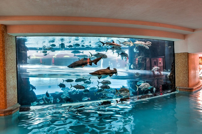 Гости отеля Golden Nugget могут поплавать рядом с экзотическими рыбами и… акулами! Однако опасаться за свою жизнь не придется: хищники находятся в специальном резервуаре с защитными перегородками. Но этих стен во время плавания не видно, поэтому выброс адреналина посетителям обеспечен!