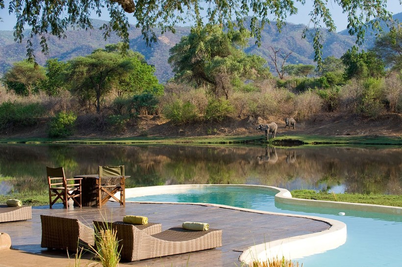 Весь этот отель — настоящий сафари-лодж. Бассейн тут организован под открытым небом рядом с рекой, куда приходят животные на водопой. Представляете, можно просто лежать у бассейна и смотреть, как у реки гуляют слоны или антилопы. И это более впечатляюще, чем любое сафари, не правда ли?