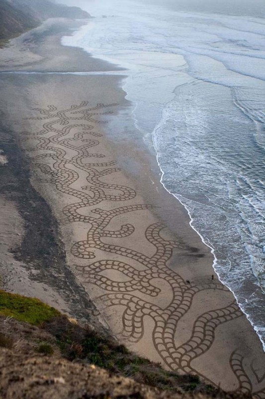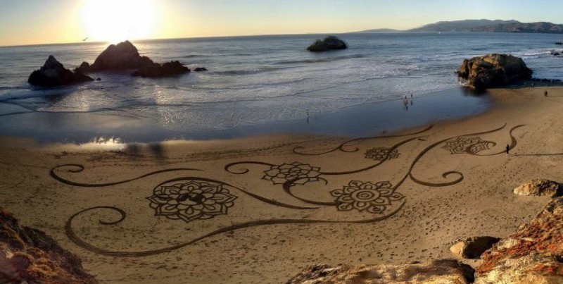 Не поверите, но художника совсем не волнует тот факт, что его творения очень скоро смоет морской волной и они исчезнут, будто бы их и не было. Напротив, создатель картин на песке считает это нормальным, поскольку ничто в нашем мире не вечно.