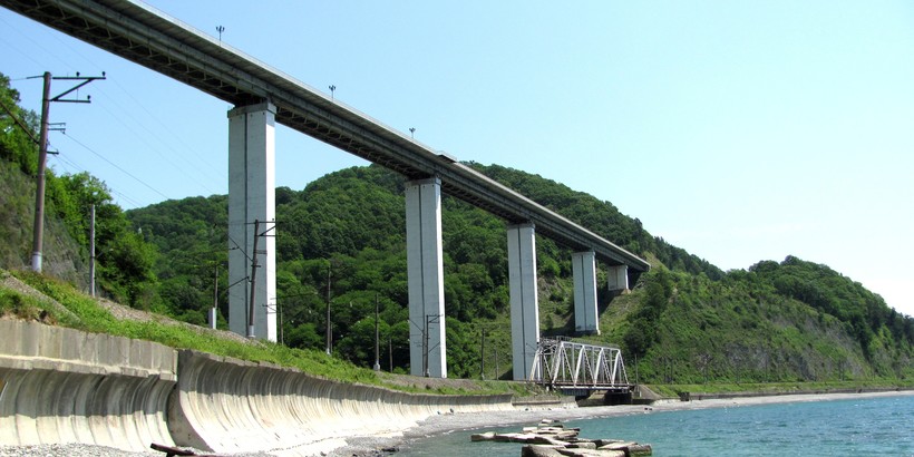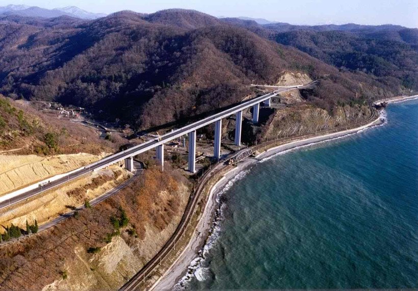 Сам мост небольшой — в длину он 576 метров, однако эта эстакада значительно сократила горный тошнотворный серпантин протяженностью в четыре километра. Старая дорога спускалась с высоты 80 метров до реки Чемитоквадже и поднималась обратно до прямой дороги в 700 метров.