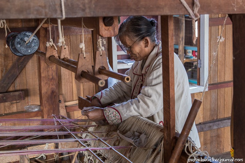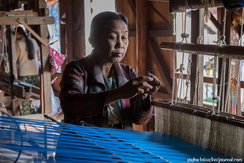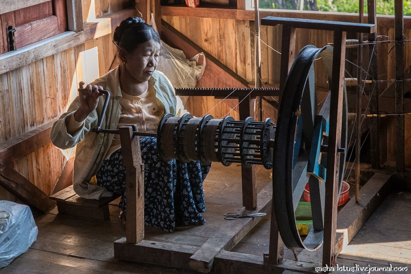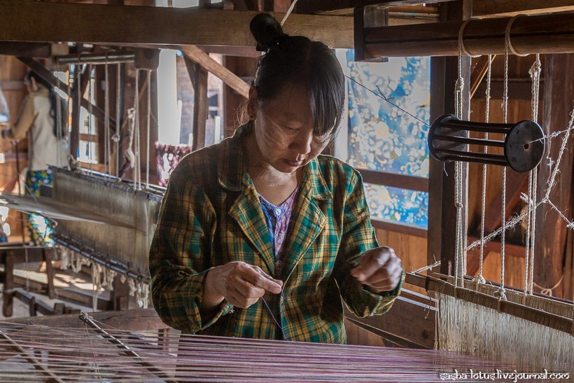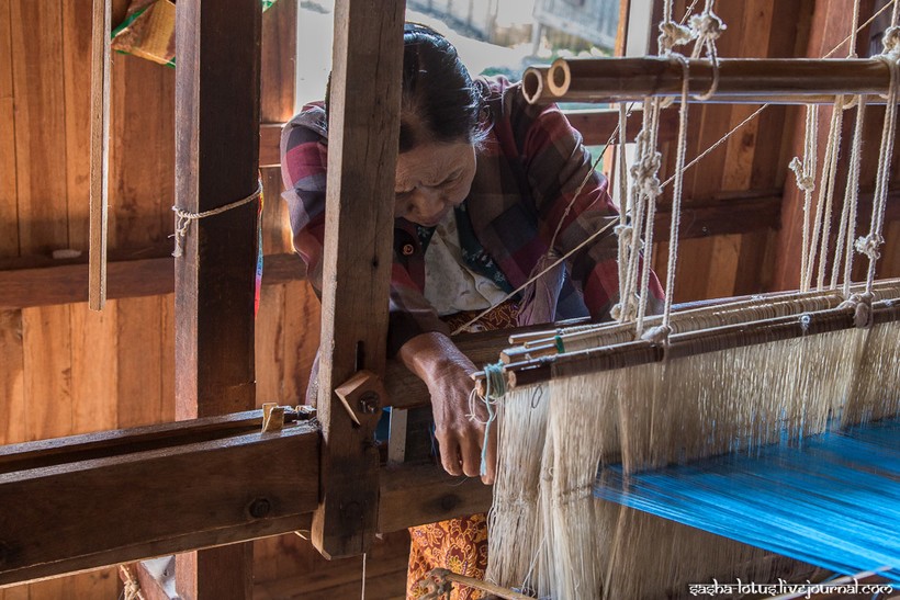 До Са У преподнесла одеяние в дар настоятелю монастыря, а впоследствии ткачеству из стеблей лотоса она посвятила всю оставшуюся жизнь. Постепенно редкий вид ткачества стал развиваться в районе озера Инле. Обилие чистой воды в сезон дождей приводит к буйному цветению лотоса, и именно в этот период бирманцы собирают наибольшее количество сырья для ткацких мастерских. Наилучшим качеством обладают волокна стебля лотоса, сорванного на пике его цветения. Волокна необходимо извлечь в течение трех дней после того, как цветок сорван. На небольшом деревянном столе женщина надрезает стебель и аккуратно вытягивает одно за другим губчатые волокна, затем из них скатывают нить и отправляют ее дальше на сушку и окраску.