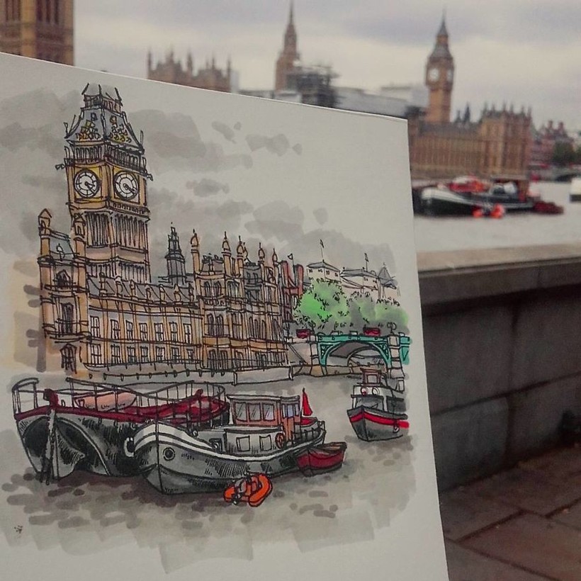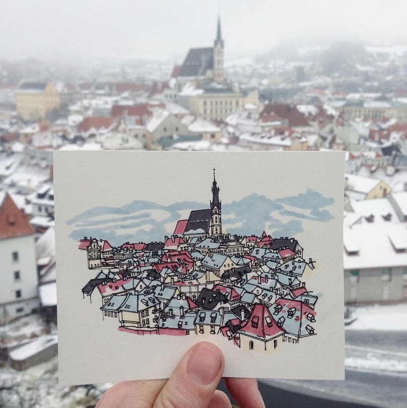 Майкл Тайлз — австралийский иллюстратор, проживающий в Лондоне, и в настоящее время путешествующий по Европе. Но Майкл не просто ездит из города в город, он еще и рисует самые красивые места населенных пунктов, в которых оказывается. Комический дневник его путешествий собрал уже немало поклонников в сети. Художник признается, что сначала делает быстрые наброски карандашом, стоя прямо перед достопримечательностью, которую рисует, а затем отправляется в ближайшее кафе или закусочную и заканчивает рисунок за горячей едой и согревающими напитками. Как бы там ни было, выглядят его эскизы невероятно классно!