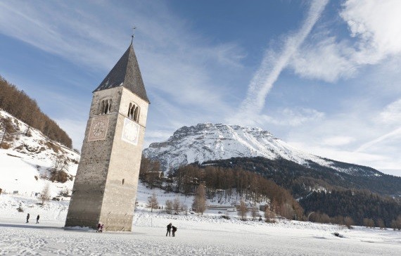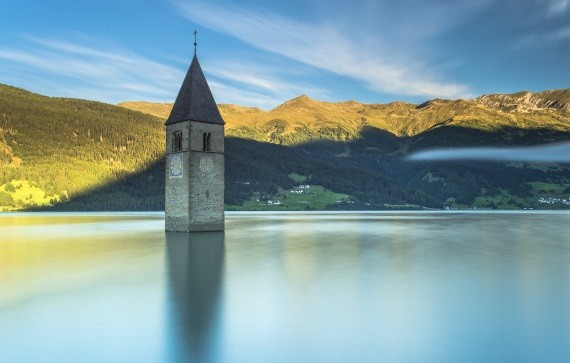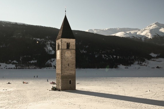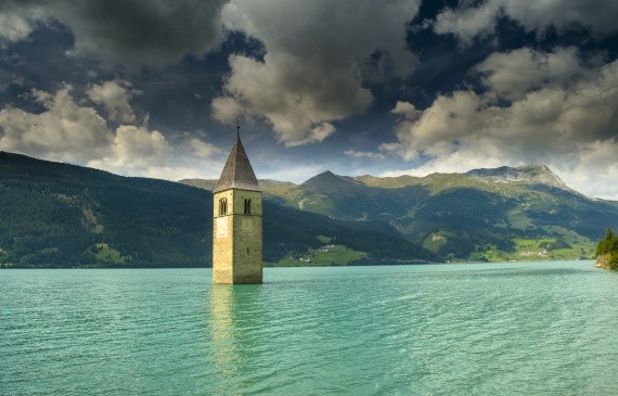 В Италии есть озеро Резия, посреди которого возвышается одинокая башня. Она является частью города Курон, затопленного более 60 лет тому назад.