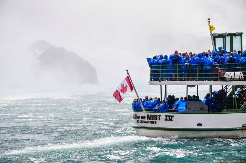 В районе Ниагары курсируют туристические корабли еще с 1846 года. Стоимость поездки сегодня составляет около 15 долларов, и оно того стоит, ведь судно подходит довольно близко к водопадам. Да и что говорить, здесь оборудовано все для людей и туристов: наверное, ни у какого другого водопада такого комфорта не сыскать) Так, со смотровой площадки прямо к причалу ведет специальный лифт.