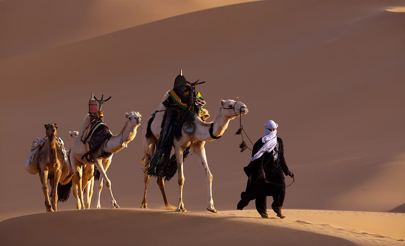 Песок здесь и правда везде. Да даже на фото из космоса Аравийский полуостров характерного песочного цвета. Конечно, в этой безлюдной пустыне есть и оазисы с раскидистыми пальмами. И в этих оазисах — бедуины, оседлавшие верблюдов (именно так называют арабских кочевников).
