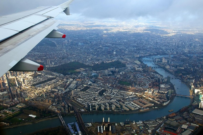 Особенность Хитроу в том, что его взлетно-посадочные полосы расположены с запада на восток, поэтому самолеты взлетают прямо над Лондоном.