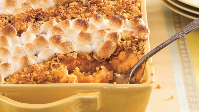 Батат и зефир. Сладкий картофель запекается под слоем зефира.