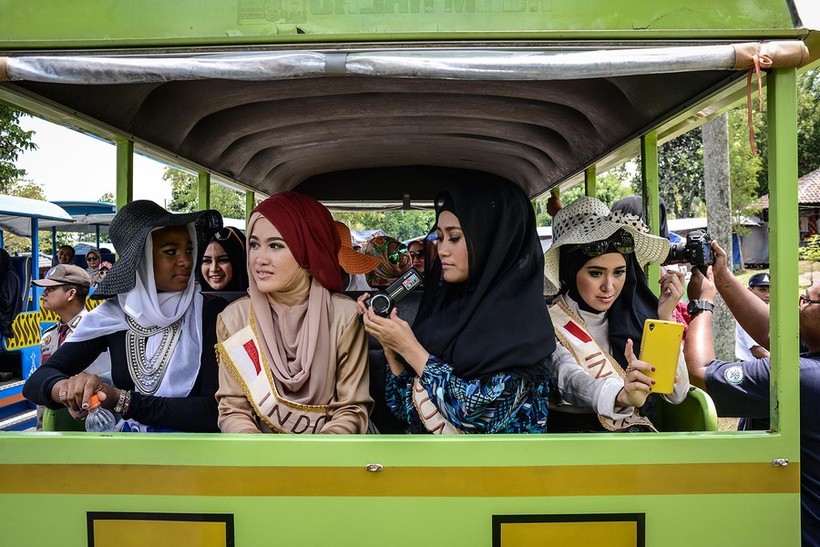 Финалистки конкурса во время визита в Боробудур — храм буддизма Махаяны 9-го века в Индонезии. (© Monique Jaques)