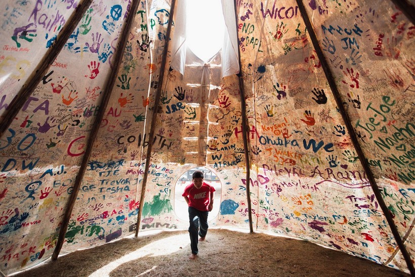 Amber Bracken из Канады. Кадр сделан внутри вигвама, на стенах которого люди со всей Северной Америки оставляли свои подписи против строительства нефтепровода Dakota Access.