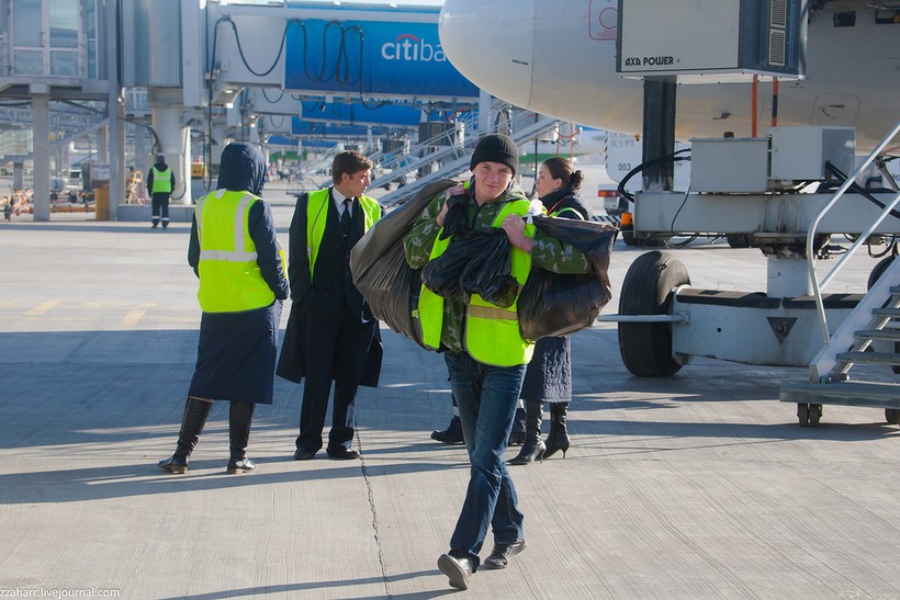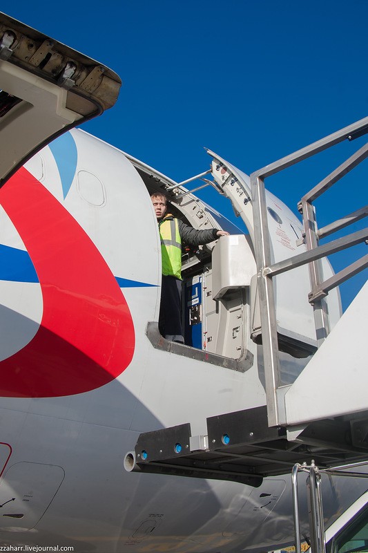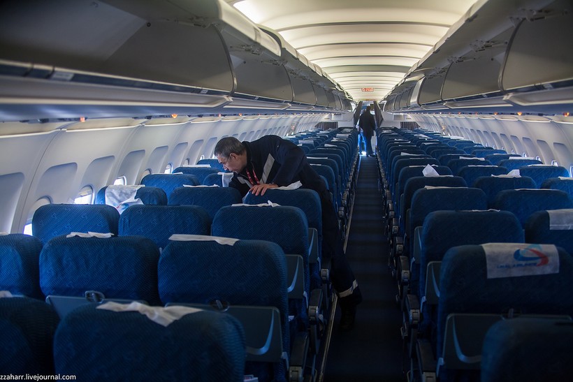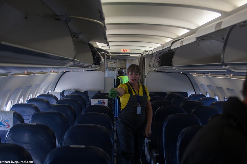 Такая спешность в работе не прихоть, а экономическая предопределенность. Самолет зарабатывает деньги, когда он в воздухе, когда он на земле, он эти деньги тратит. Чем меньше времени борт проводит на земле, тем больше он в воздухе, а значит приносит бОльшую прибыль. Время между посадкой и взлетом, затраченное на подготовку судна, называется временем разворота. Согласно стандартам западных операторов, время разворота воздушного судна типа Airbus A320 между взлетом и посадкой составляет не более 30 минут. Вот такая вот несправедливость. В начале, в течение нескольких часов, двести человек усердно крошат печеньки, засовывают фантики в щели, лепят жвачки на подлокотники и проливают кофе, а потом бригада наземного обслуживания из нескольких хрупких женщин опять наводит шик, блеск и красоту.