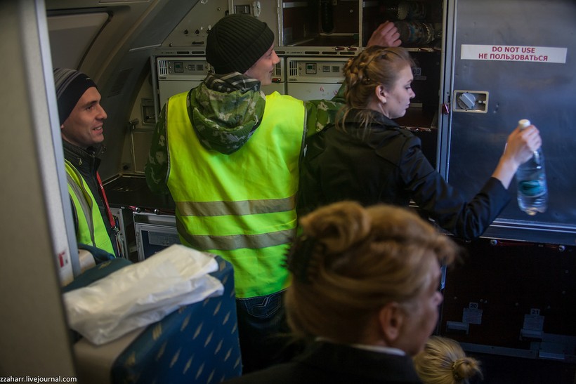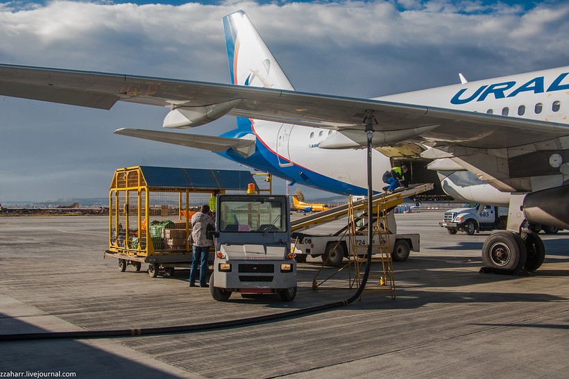 За бортом тем временем кипит не менее напряженная работа. Топливо нужно заправить, воду залить, багаж загрузить, касалетки... тоже загрузить.