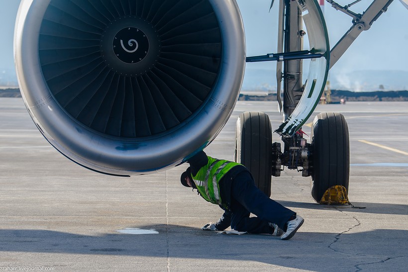 Вместо уборщиц и супервайзеров на борту техники-инженеры. Вдумчиво и не торопясь они проверяют, как общее техническое состояние лайнера, так и работу всех его систем.