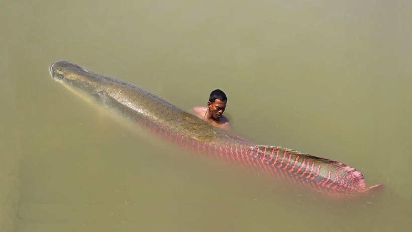 Огромный хищник арапаима экипирован бронированной чешуей, поэтому безбоязненно плавает среди пираний, питаясь рыбой и птицами. Длина этих жутких рыб составляет почти три метра, а вес — 90 килограммов. О свирепости этих созданий можно судить по их зубам, которые есть даже на языке!