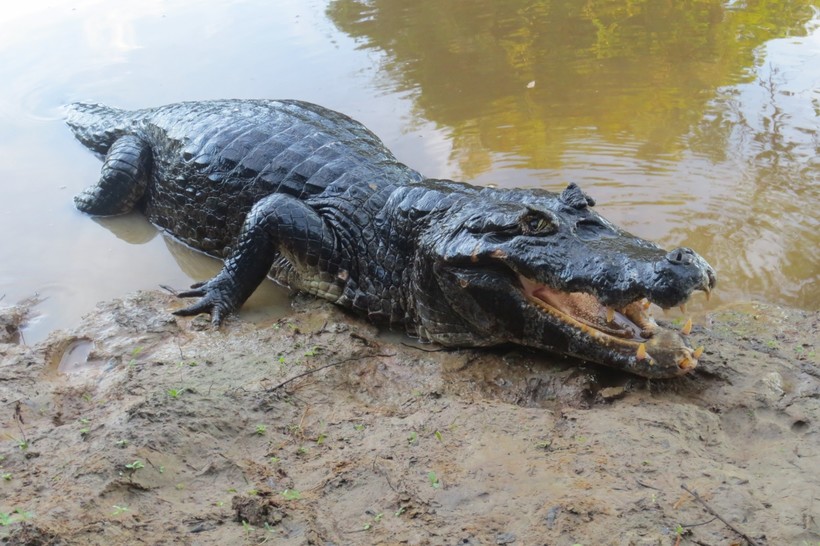 Можно сказать, что это аллигатор на стероидах, их мышцы куда крупнее, а вырастать они могут до шести метров в длину. Это, несомненно, высшие хищники реки Амазонки, местные короли, которые без разбора едят всех, кто попадается им на пути.