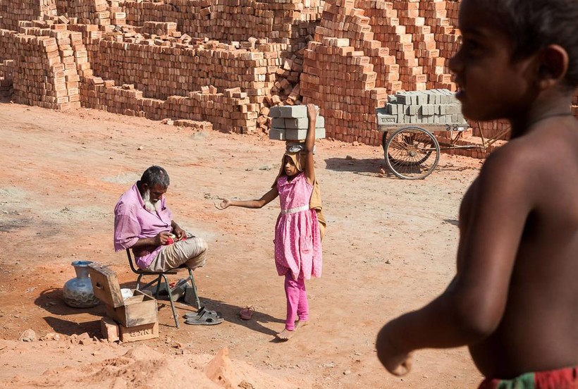 Дети также входят в число рабочих и могут составлять около 10% сотрудников. К примеру, этой девочке, работающей на кирпичном заводе, 10 лет.