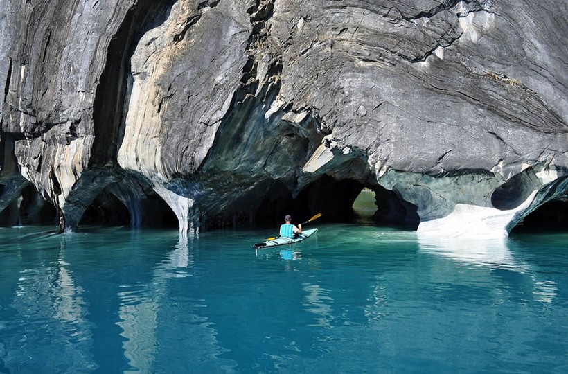 Этот водоем расположен на границе двух стран. Вода в нем яркого, насыщенного цвета, даже небо по сравнению с ним не такое яркое. Но воды — это не главное в Хенераль-Каррера. Дело в том, что с чилийской стороны у его берегов есть потрясающие мраморные гроты.