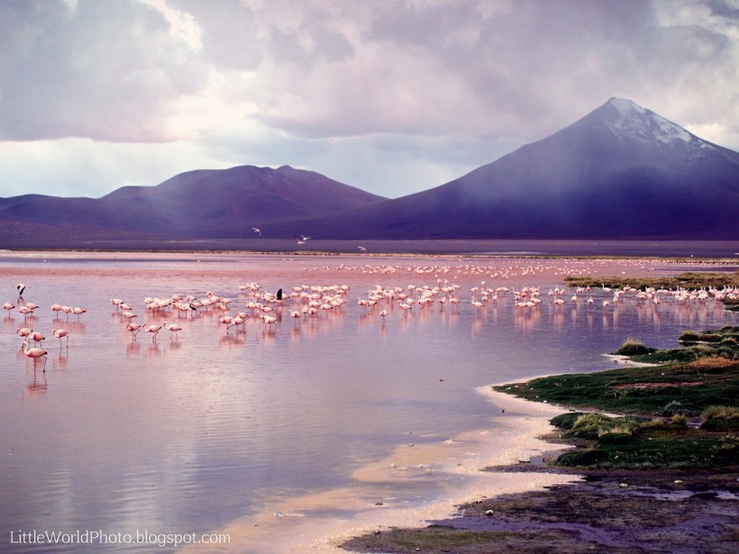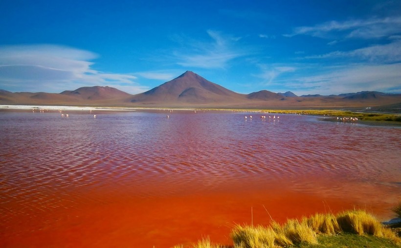 Вода в этом красивейшем озере кровавого цвета, а иногда насыщенного фиолетового. Цвет меняется в зависимости от температуры воздуха и времени суток. В воде растут водоросли, которые и придают Лагуне-Колорадо красный оттенок. Сам по себе водоем очень мелкий (максимальная глубина не превышает и 1,5 метров, а средняя, вообще, около 40 сантиметров), но его площадь составляет около 60 квадратных километров.