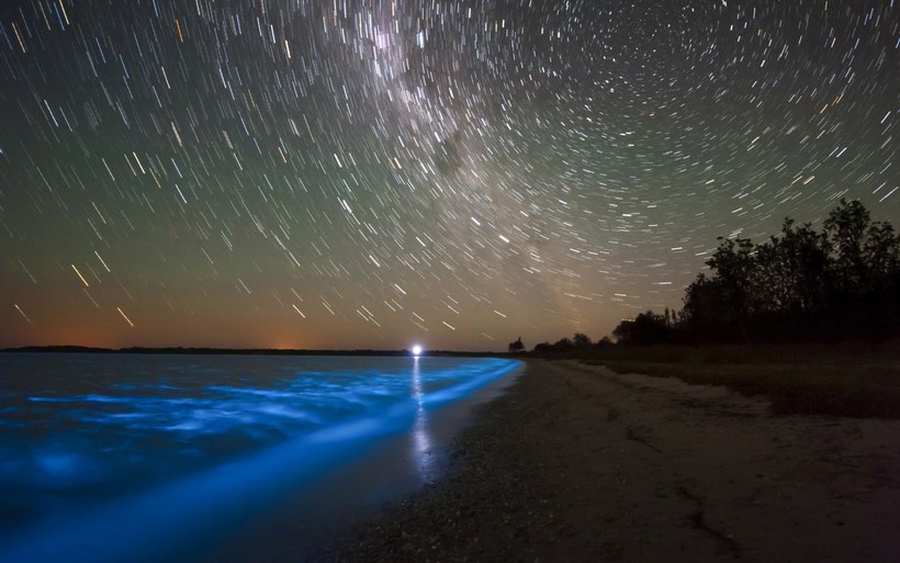 Это растение способно к биолюминесценции. И когда ночесветки скапливаются у поверхности, то они дают этот потрясающий эффект!