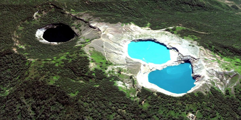 Эти три удивительных водоема находятся в кратере вулкана Келимуту. Каждый из них имеет свой цвет, при этом периодически их воды меняются. Так, озеро может превратиться из красного в бирюзовое или черное.