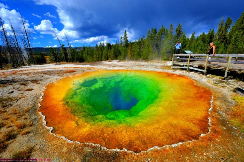 Вы думаете, это озеро находится на какой-то другой планете? Вы ошибаетесь. На это чудо природы можно посмотреть в Национальном парке Йеллоустоун (США). Это не просто озеро, это большой геотермальный источник, температура на поверхности здесь достигает примерно 70 градусов. Особенный цвет ему придают бактерии и водоросли, которые переливаются всеми цветами радуги.