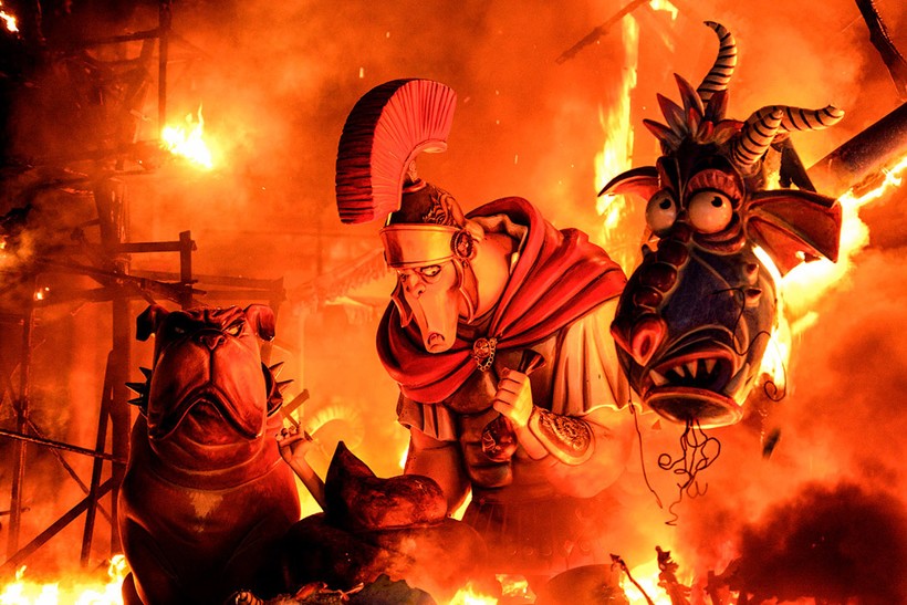 Продемонстрированные на валенсийском празднике огня фигуры называются «Нинотс». Каждый год их высота становится все больше, некоторые и вовсе могут достигать 15-20 метров.