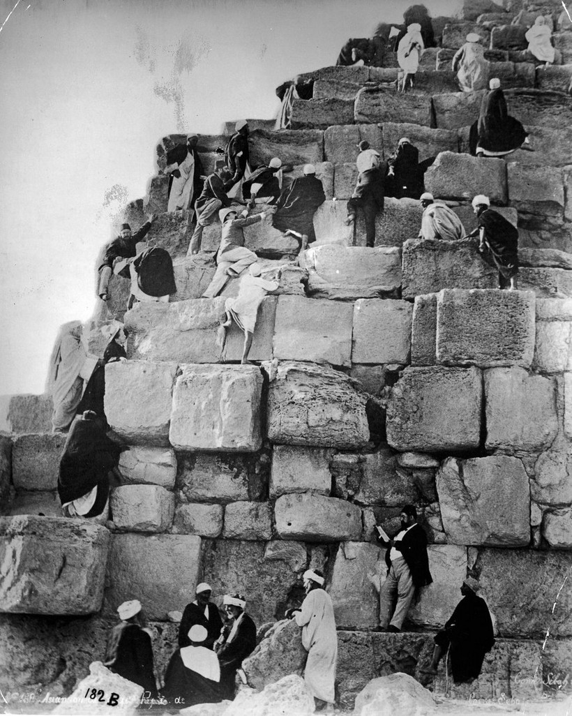 Эти снимки, созданные в период с 1860 по 1935 год, смогут продемонстрировать нам, как европейцы стремились попасть на вершину одного из семи древних чудес нашего мира. К сожалению, нам их подвиги уже не повторить — в настоящее время восхождение на египетские пирамиды строго запрещено.
