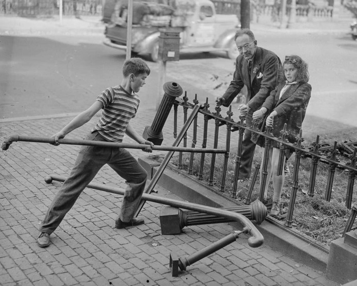 Работа по сбору вторсырья была проделана грандиозная. Пункты приема металлолома устраивали между собой соревнования, женщины несли алюминиевые кастрюли и сковородки, фермеры отдавали свои старые тракторы, а на городских улицах повсюду разбирали кованые заборы. В дело шли даже исторические пушки времен Гражданской войны. Кажется, в стране не было ни одного равнодушного гражданина, который не стремился бы внести хоть какой-то вклад в сбор материалов, необходимых для военной победы.