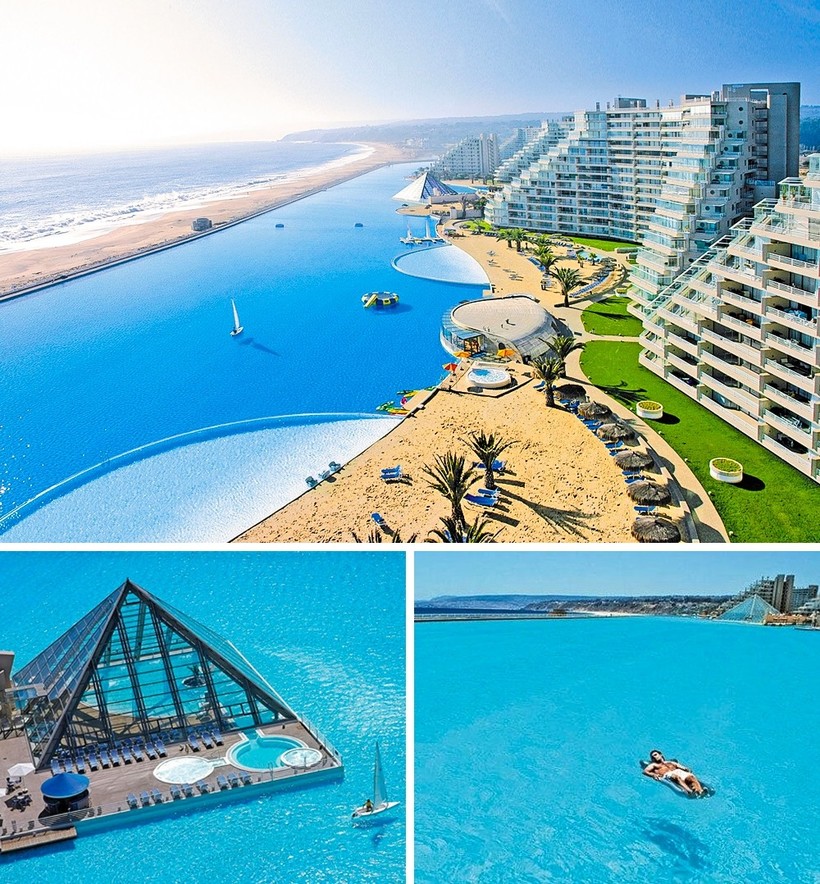 Бассейн отеля San Alfonso del Mar — самый большой в мире. Его длина — 1 км. На строительство было потрачено $ 2 млрд, а его содержание обходится в $ 4 млн в год. Чтобы наполнить бассейн нужно 250 млн литров воды.