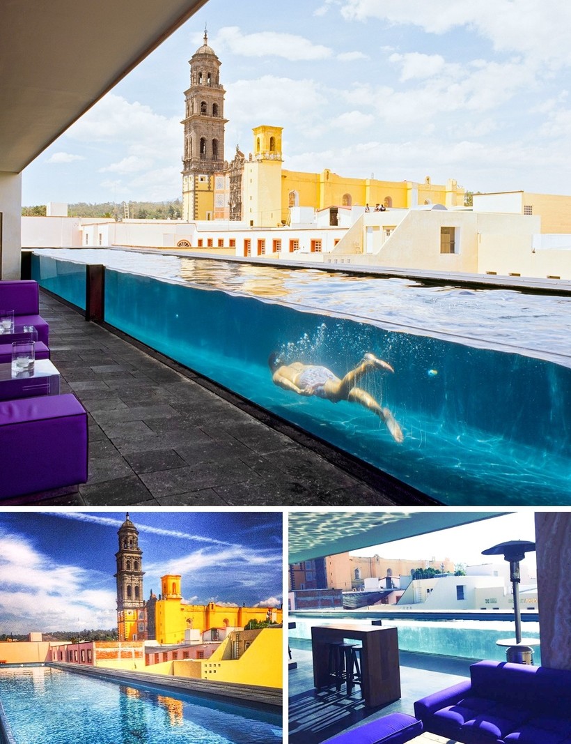 Бассейн мексиканского La Purificadora Hotel занимает помещение бывшей водоочистительной станции и проходит через ресторан и бар. Отсюда можно любоваться городом, внесенным в список объектов Всемирного наследия ЮНЕСКО.