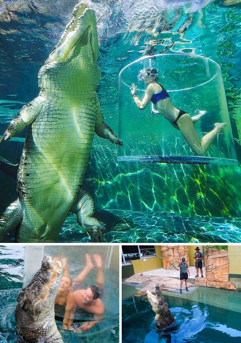 Главная достопримечательность австралийского города Дарвина — бассейн с гигантскими крокодилами, длина которых достигает 5 метров. В аквариум можно погрузиться в прочной стеклянной капсуле — «клетке смерти», но, говорят, решаются не все.
