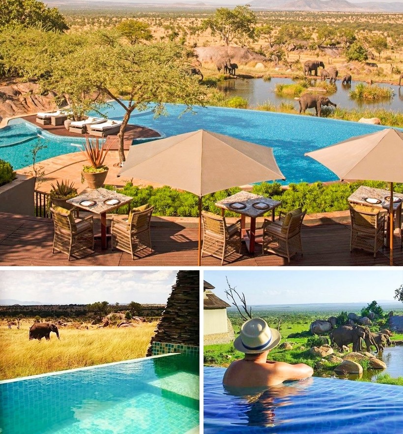 Бассейн отеля Four Seasons находится в сердце африканского заповедника Серенгети — у водопоя, куда приходят утолить жажду дикие животные.