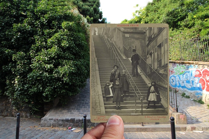 Французский художник Жюльен Кнез задался вопросом, как изменился Париж с 1900-х годов, гуляя по этому восхитительному городу летом 2015. Мужчина подошел к этой информации основательно, что, в итоге, привело к созданию целой фотокниги под названием "Paris, Fenêtres Sur l'Histoire". В ней вы найдете 80 изображений современных парижских улиц, соединенных со старыми фотографиями, на которых запечатлены эти же места 100 лет назад. Такой формат, позволяющий увидеть одну и ту же улицу одновременно сегодня и больше века назад, действительно впечатляет, ведь изменения кажутся просто невероятными!