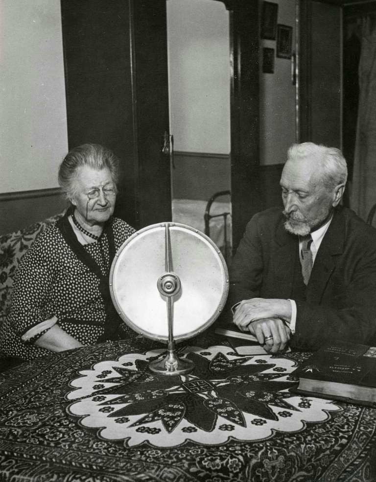 Русские аристократы, проживающие в небольшом доме в пригороде Парижа, сидят за столом и слушают радио. Франция, 1931 год.
