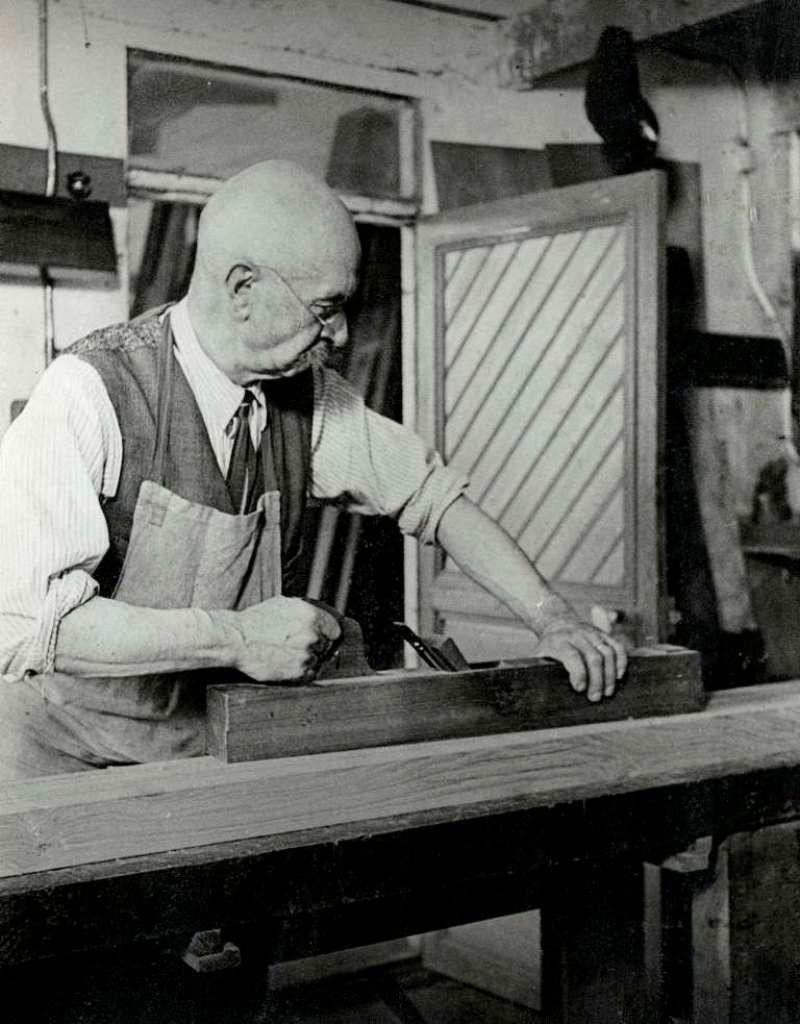 Бывший ректор Технического университета в Санкт-Петербурге Йохан фон Греков, изготавливающий в эмиграции гробы.