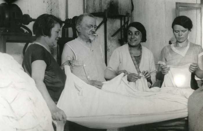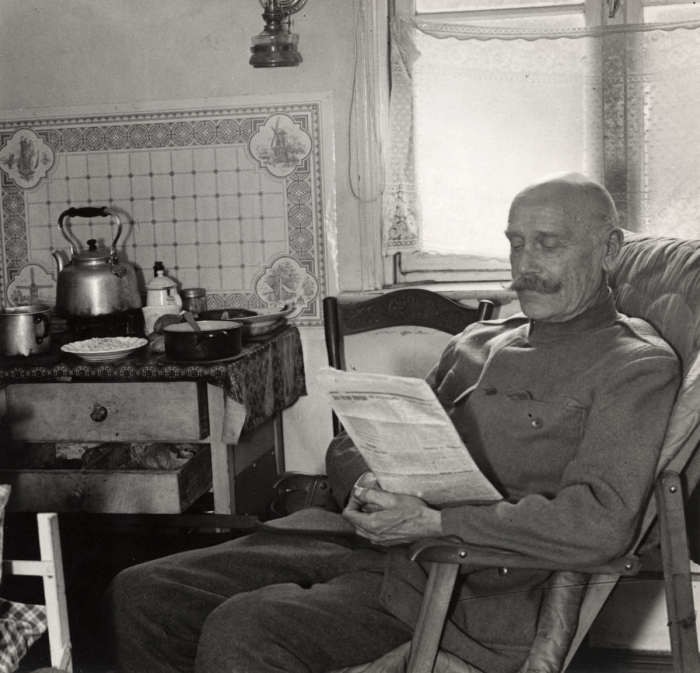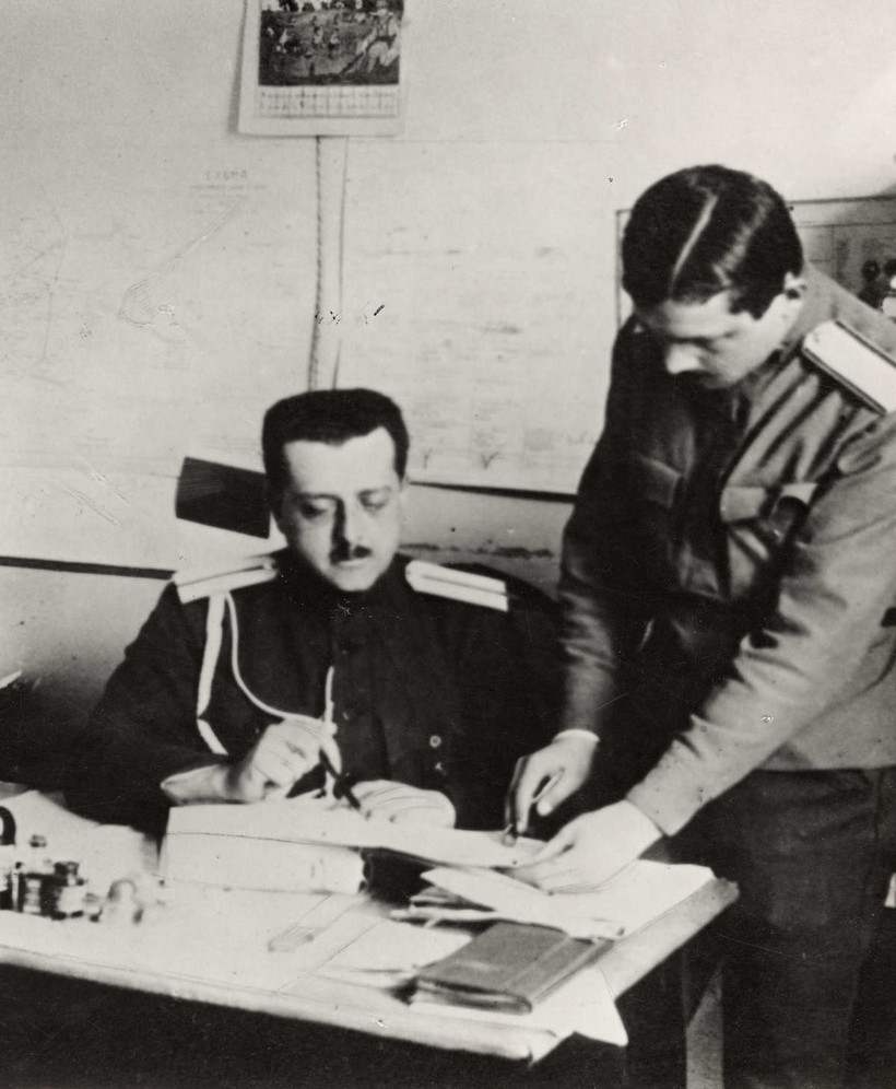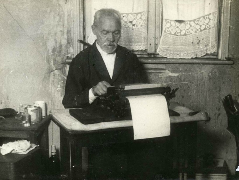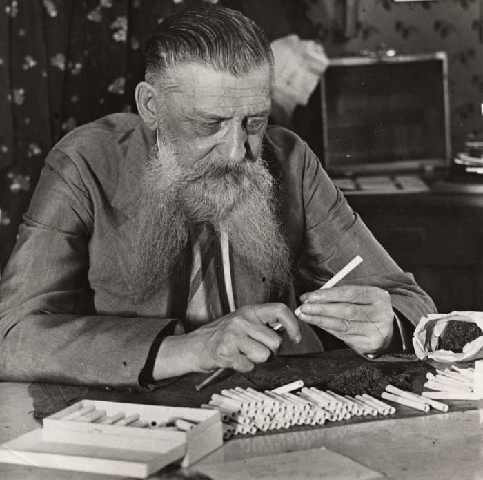 Генерал фон Фусс в эмиграции, набивающий папиросы табаком. Берлин, Германия 1930 год.
